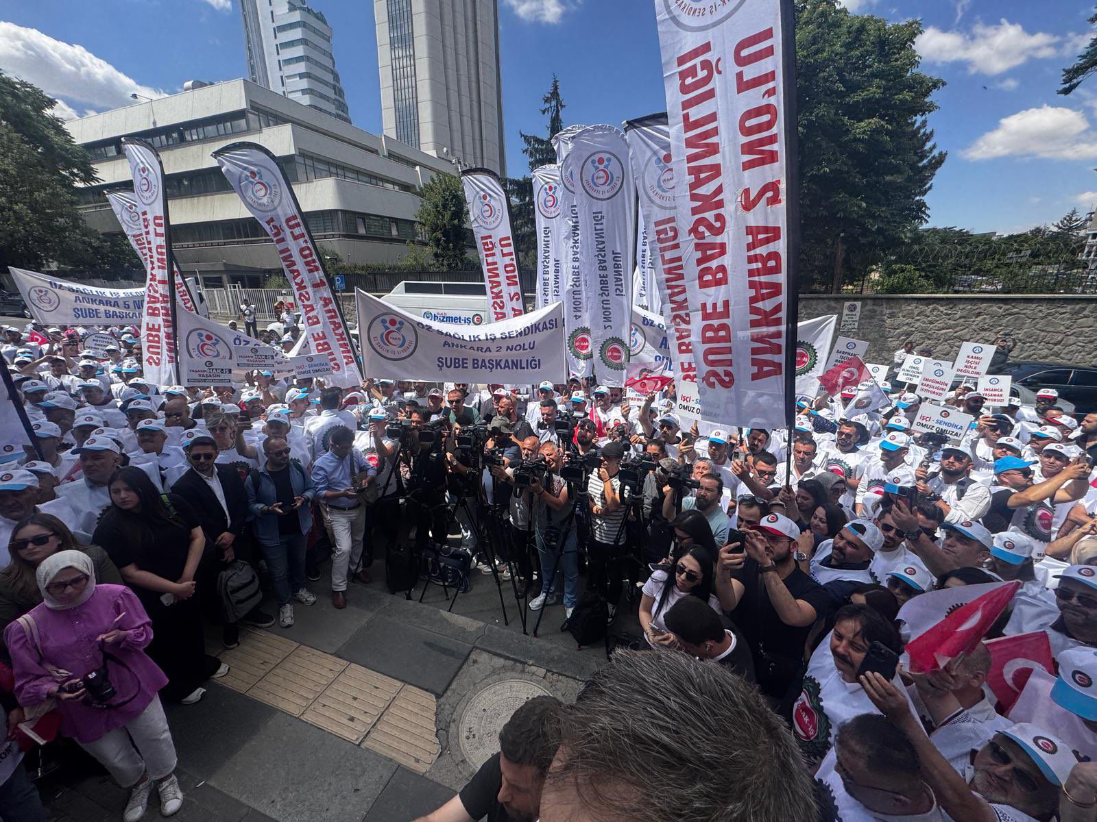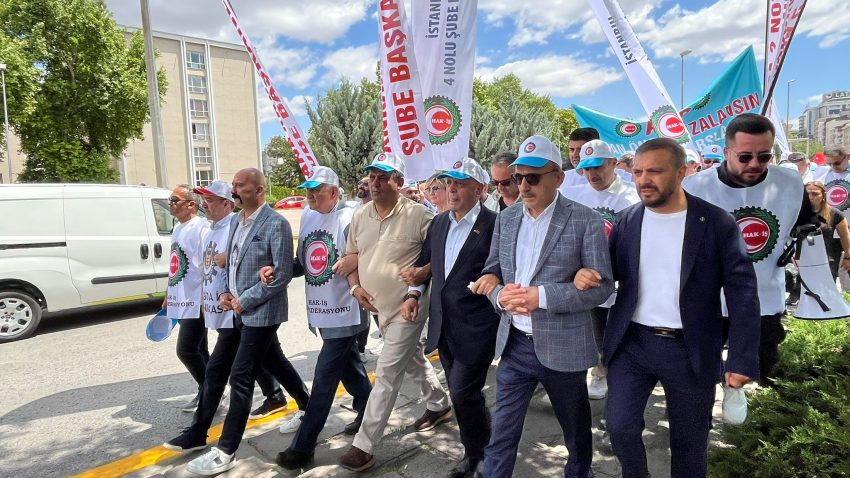 Hak İş Konfederasyonumuza Bağlı Sendikalar ve 81 ilden gelen Emekçilerle Hazine ve Maliye Bakanlığına yürüdük.TÜHİS in KÇP için verdiği Türkiye gerçeklerinden uzak Teklifini kabul etmediğimizi haykırdık.Emekçi için yaşamın zorlaştığı bir süreçte hakkaniyetli bir ücret talep ettik.03.07.2025